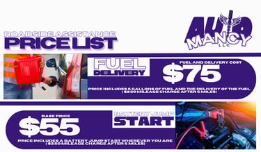 Whether you're dealing with a flat tire, a dead battery, or an empty gas tank, being stuck on the side of the road can be stressful and frustrating. That’s why Automancy offers fast, reliable, and professional roadside assistance to get you moving again as quickly as possible. No matter the time or place, our team is ready to provide the help you need when you need it most.