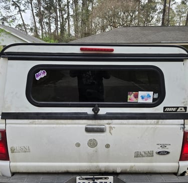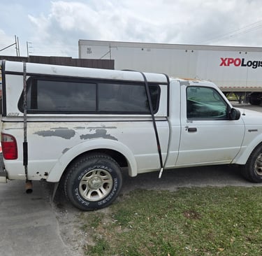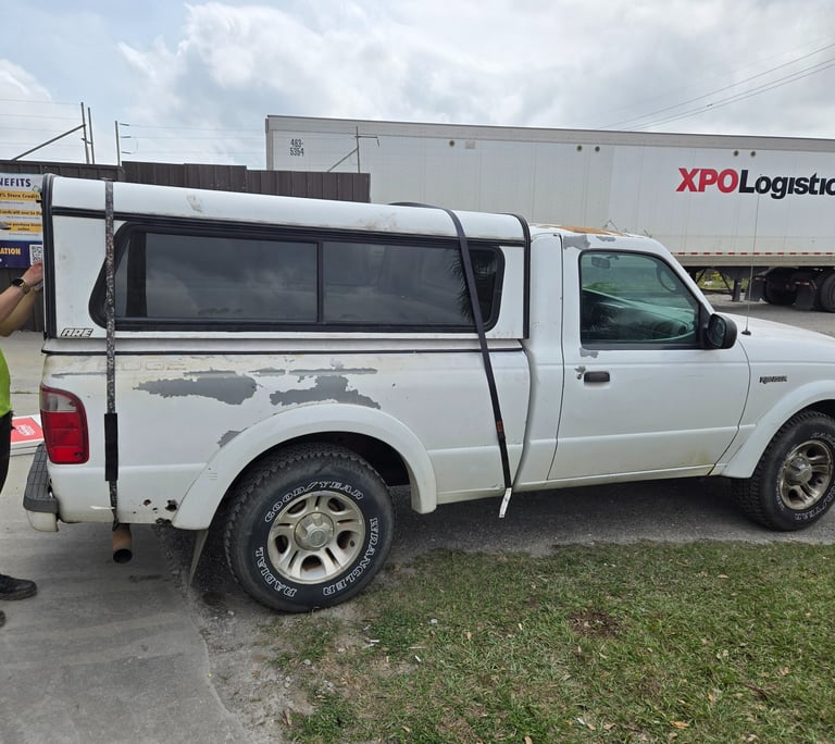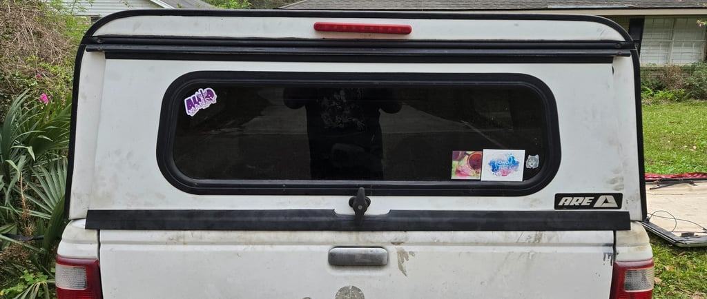 While I hunted for parts, Kevin called me over—he’d found a camper topper that might fit my Ranger. After some impromptu measuring, I confirmed it would be a near-perfect fit. Problem? The Ranger still had a tonneau cover attached. No matter—I was determined to take it home. After securing both the rear end and the topper, we celebrated with lunch at La Carreta in Covington (taco cravings sadly unsatisfied by Pull-A-Part’s food truck). Back home, I couldn’t resist fitting the topper onto the Ranger right away.
