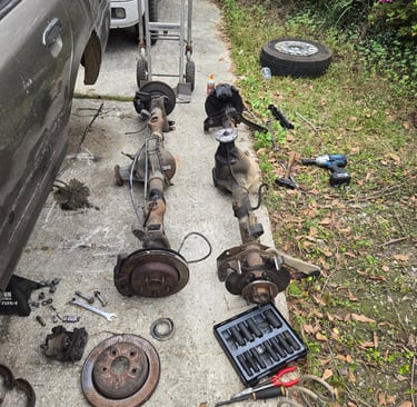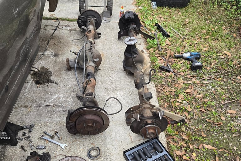 This day was one for the books. I loaded up the Ford Ranger with tools and an incorrect rear end before meeting Kevin in Mandeville. Our mission? Head to Pull-A-Part in Harvey, Louisiana, and find the right rear end. The Ranger handled the trip perfectly, but we hit a snag when the yard staff wanted the receipt for a marked part. After some negotiating, I swapped the part without warranty—better than buying another. I finally located the correct rear end on a yellow taxi cab Grand Marquis, but not without some hurdles. One potential match was blocked by a fallen car, and another had a mini-lake underneath it (and I wasn’t ready for a swim).